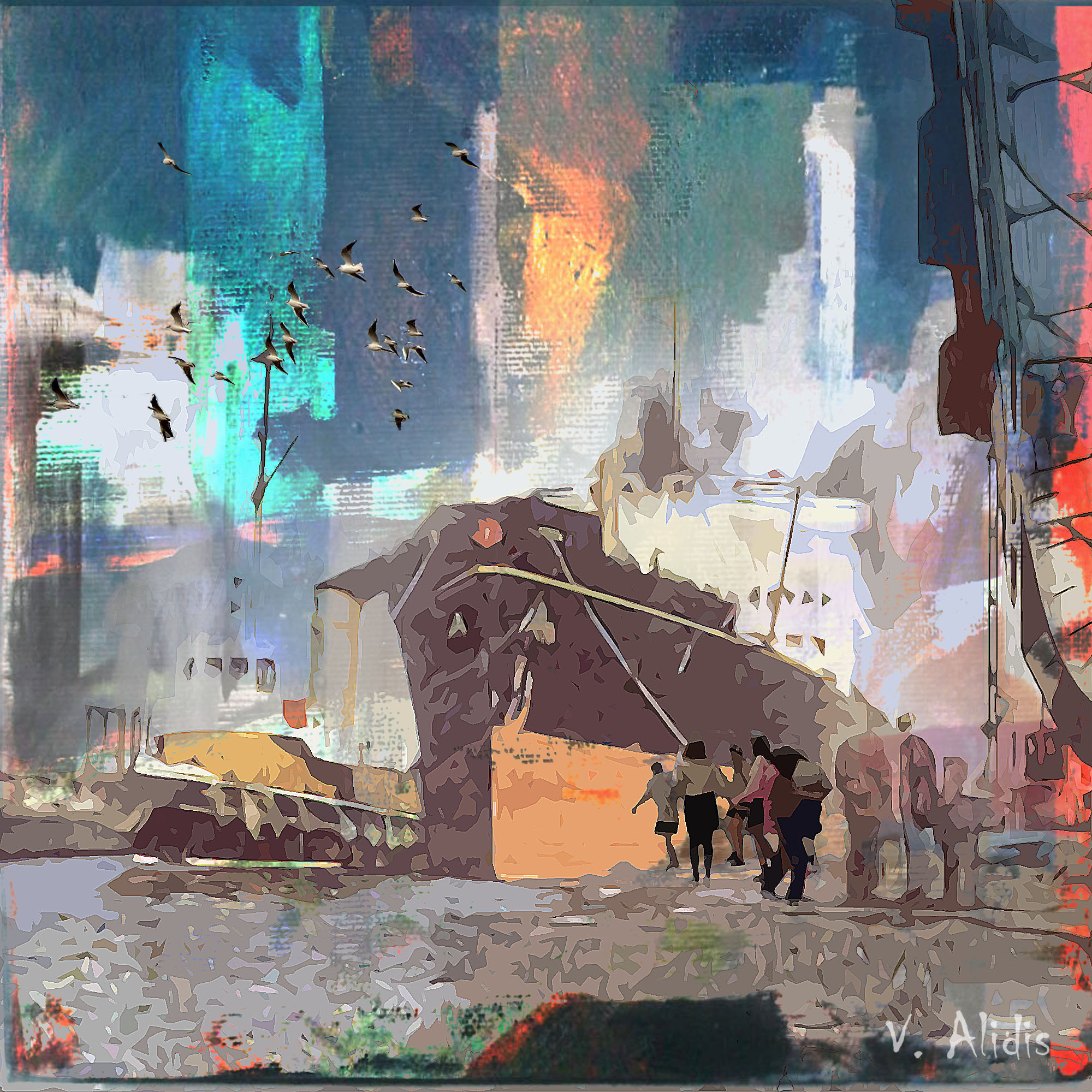 The creator, even in conventional forms of art, composes their expression, language and writing alone. Artistic personality is formed individually. As if it arises from “disorder”, as if the artist is self-taught. To search is interesting, to find is exciting. Digital Painting is an unbeaten path in a field of test and taste. An amusing artistic model that studies the past, but speaks in the present. The piece of work is shaped with respect to the rules of Painting, through an “algorithm” of a noetic process that blends composite and organized art with conceptual abstraction.
